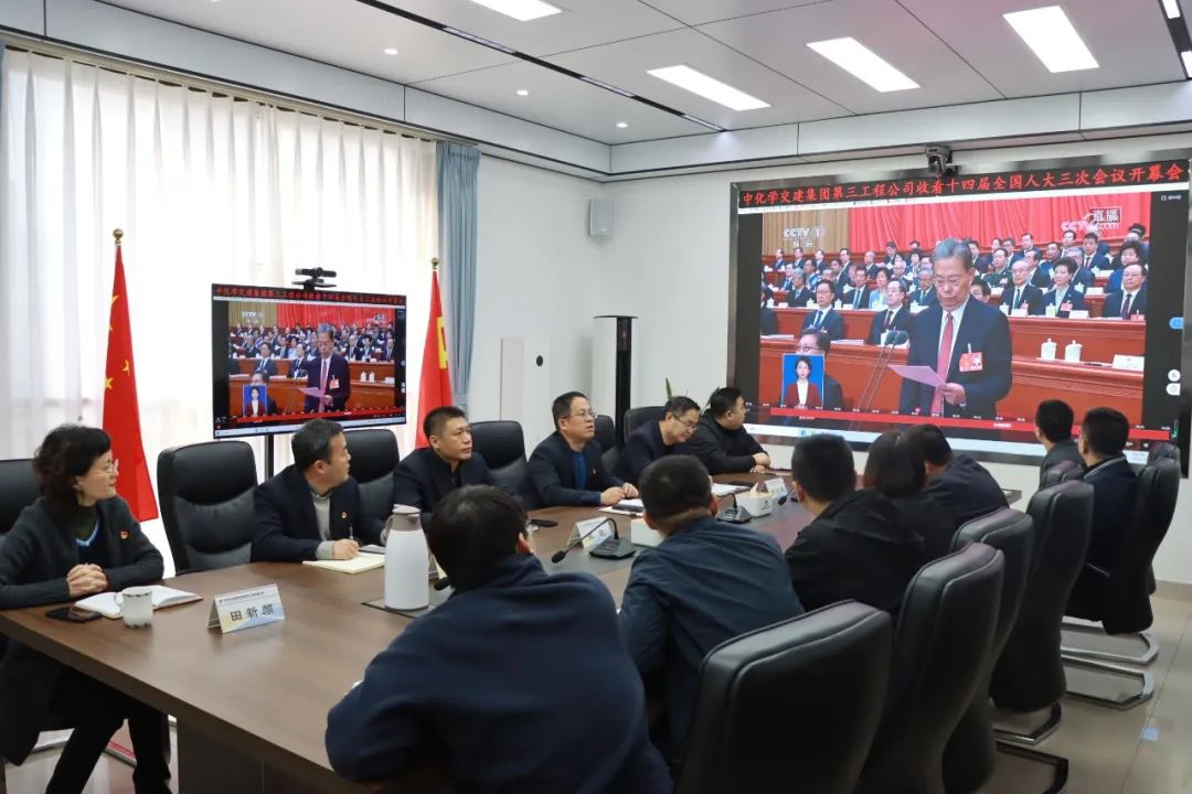 3月5日上午9时,十四届全国人大三次会议在人民大会堂开幕,中共中央总书记、国家主席、中央军委主席习近平等党和国家领导人出席开幕会。国务院总理李强代表国务院,向十四届全国人大三次会议作政府工作报告。中国化学党委书记、董事长莫鼎革作为全国人大代表参加会议。中国化学广大干部职工以不同方式收听收看两会开幕盛况,认真学习领会大会精神,集体“充电”,汲取奋进力量。