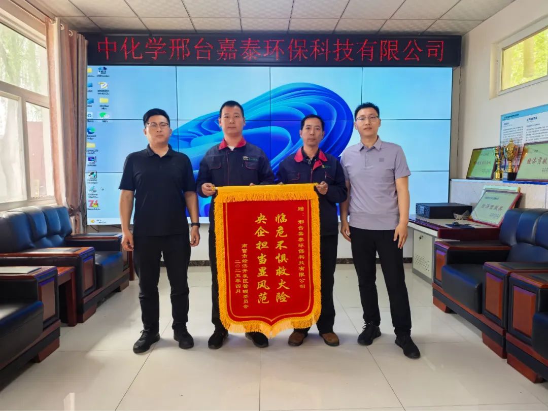 南宫市经济开发区管理委员会赠送题有“临危不惧救火险,央企担当显风范”字样的锦旗,对嘉泰公司员工在紧急火情中的英勇表现表示高度赞誉。