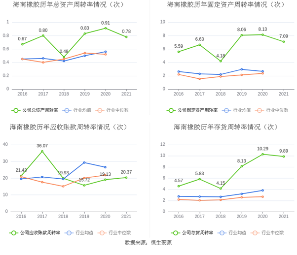 营运能力方面,2021年,公司总资产周转率为0.78次,上年同期为0.91次(2020年行业平均值为0.56次,公司位居同行业4/20);固定资产周转率为7.09次,上年同期为8.13次(2020年行业平均值为2.66次,公司位居同行业1/20);公司应收账款周转率、存货周转率分别为20.37次、9.89次。