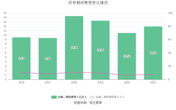 2021年全年,公司期间费用为11.99亿元,较上年增加1.47亿元;期间费用率为7.82%,较上年上升1.14个百分点。