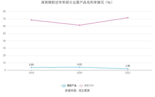 分产品看,橡胶产品、橡胶木材2021年毛利率分别为1.96%、71.68%。