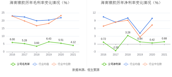 数据统计显示,海南橡胶近三年净利润复合年增长率为-13.74%,在种植业行业已披露2021年数据的9家公司中,海南橡胶的净利润复合年增长率排名第6。