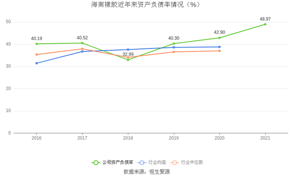 在偿债能力方面,公司2021年末资产负债率为48.97%,相比上年同期上升6.07个百分点。