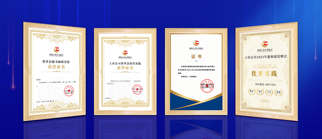 近日,中国上市公司协会发布了一系列评选活动结果,四方股份先后荣获“2024年上市公司可持续发展优秀实践案例”“2024年上市公司董事会优秀实践案例”“上市公司2023年报业绩说明会优秀实践”,以及公司董事会秘书荣获履职评价4A评级。以上荣誉是对四方股份在高质量可持续发展、践行ESG理念、规范运作、信息披露事务管理、投资者关系管理等方面的充分肯定和认可。