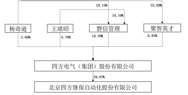 年报显示,四方股份的控股股东为四方电气,直接持有公司39.07%股份;实际控制人为杨奇逊、王绪昭,杨奇逊现任四方电气董事、华北电力大学教授,王绪昭现任四方电气董事。