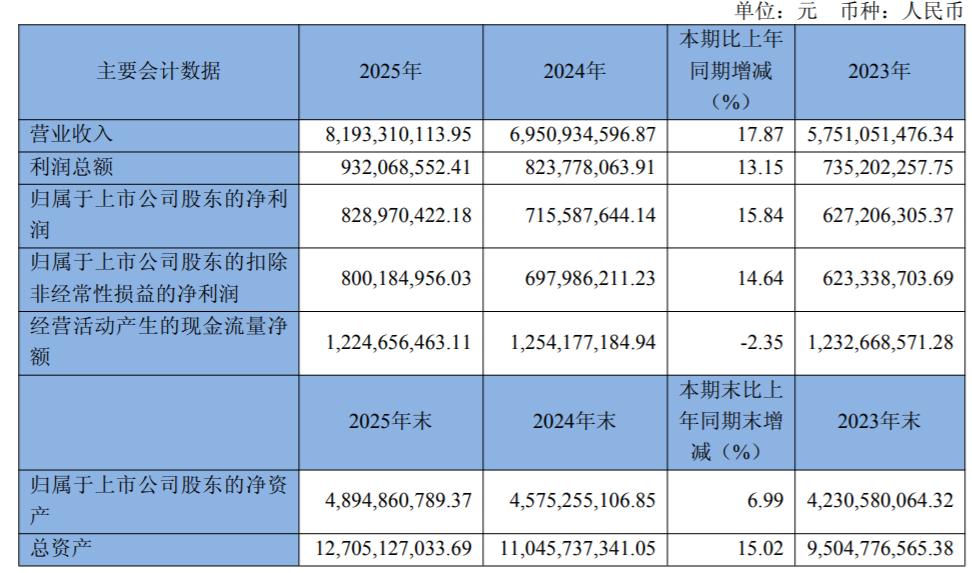 2025年,四方股份实现营业收入81.93亿元,同比增长17.87%;实现归属于上市公司股东净利润8.29亿元,同比增长15.84%。
