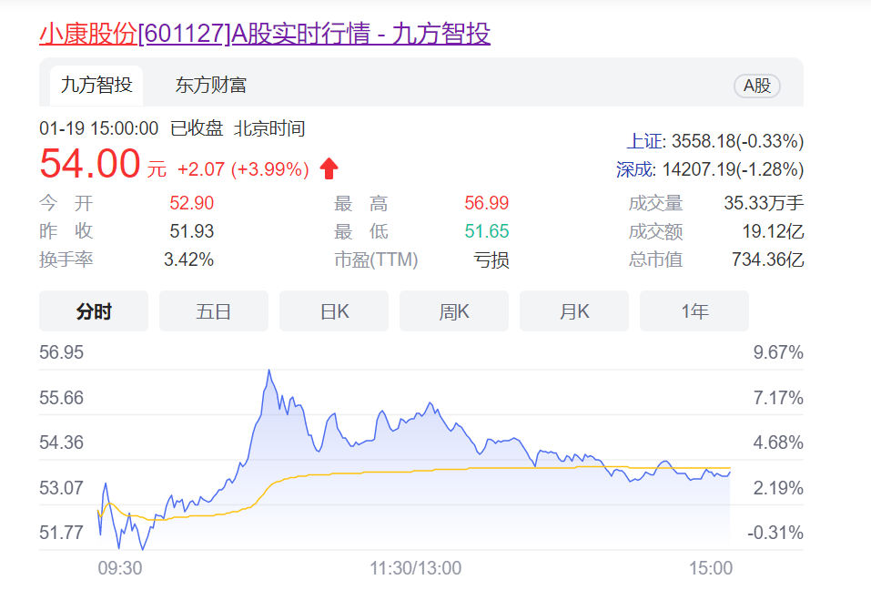 近日,有媒体爆出某证券首席策略分析师建立了20多人的小团队,对小康股份股价进行“炒作”。其成员中有券商机构,有游资,还有部分华为员工。受此影响,小康股份18日低开开盘45.75元/股,跌3.09%,随后股价迅速拉升,最高股价56.95元,涨幅近10%。