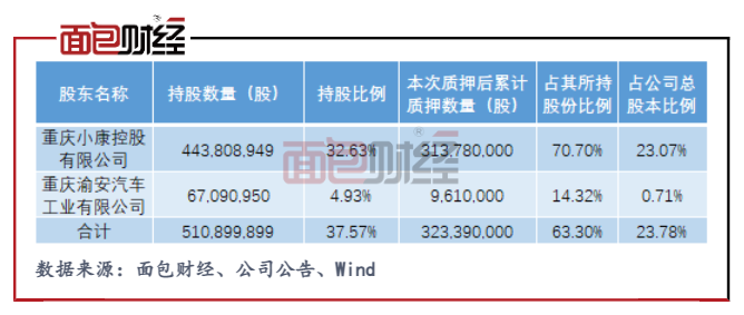 此次质押完成后,小康控股及其一致行动人重庆渝安汽车工业有限公司所持有公司股份累计质押数量为3.23亿股,占其持股数量的比例为63.30%,占公司总股本的23.78%。