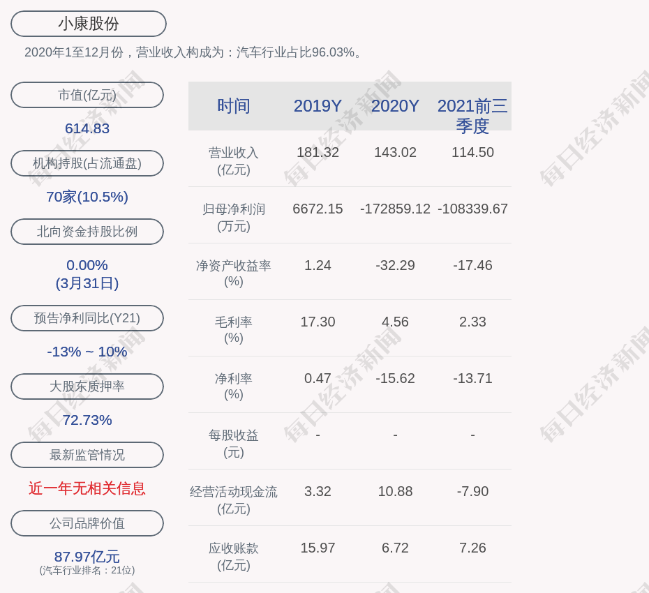 2020年1至12月份,小康股份的营业收入构成为:汽车行业占比96.03%。