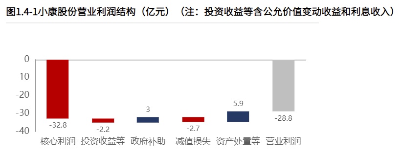 小康股份经营业务持续亏损。主要靠"微型汽车"支撑销售和盈利。
