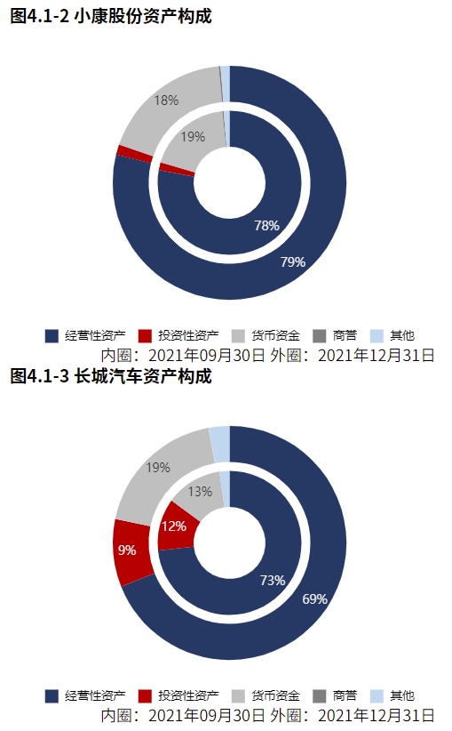 小康股份长期股权投资0.40亿元,较2020年12月31日快速下滑。其总资产占比较2020年12月31日基本稳定。小康股份对长期股权投资的配置明显低于长城汽车。