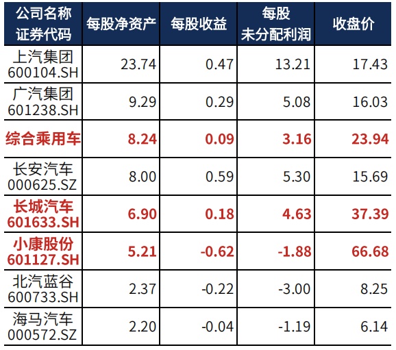 图表:综合乘用车每股指标排名(已披露2021年报企业)