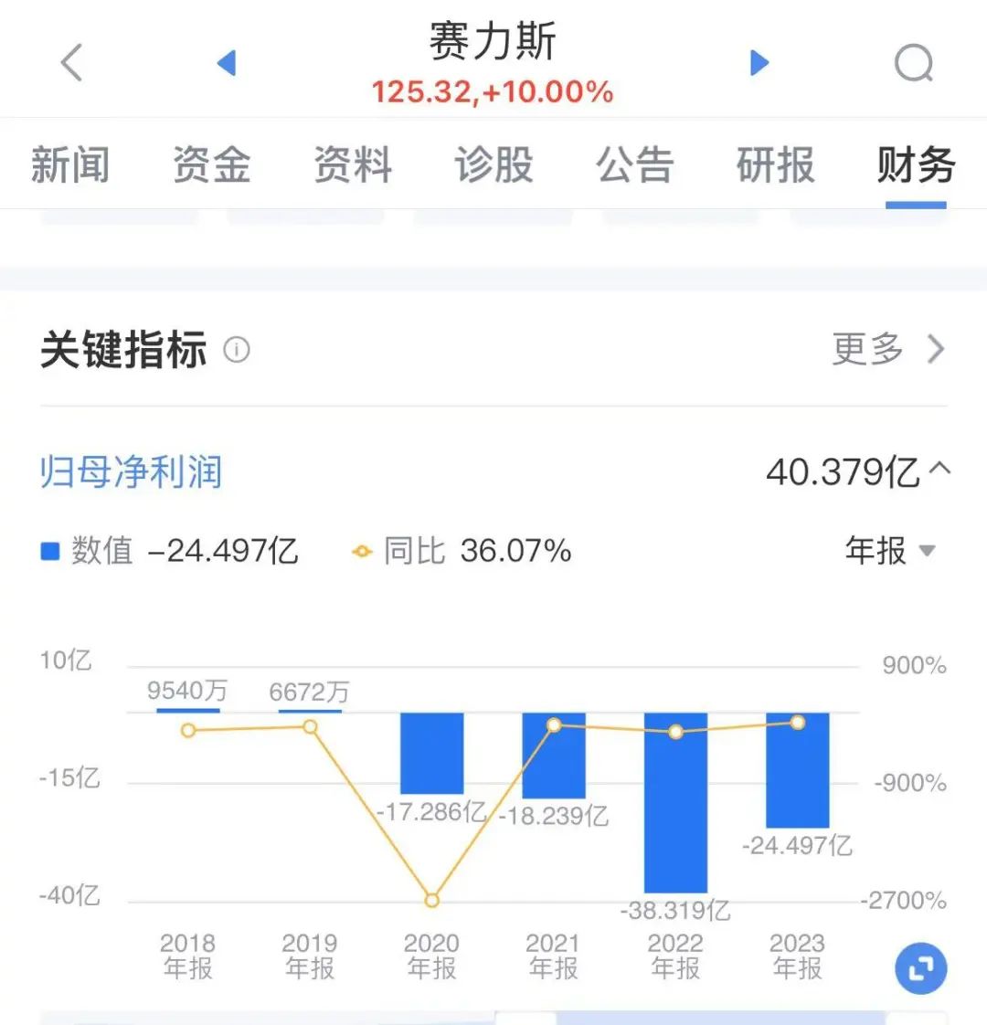 因M7销量远好于M5,在2023年下半年,赛力斯股价开始飙升。即便在2023年,赛力斯仍处于亏损状态。