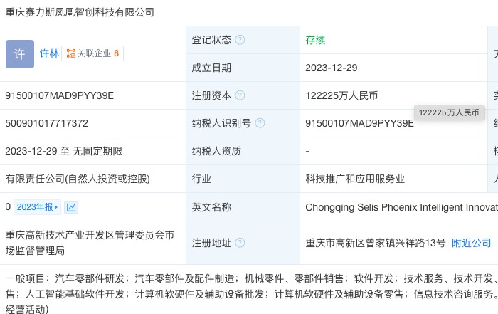 值得一提的是,虽然赛力斯并未确认相关消息,但其与重庆市财政局控股公司共同成立合资公司——重庆赛力斯凤凰智创科技有限公司(以下简称“凤凰智创”)却被外界视为赛力斯承接人形机器人业务的载体。对此,上述赛力斯相关工作人员回复称表示:“相关信息还需以官方信息为准。”