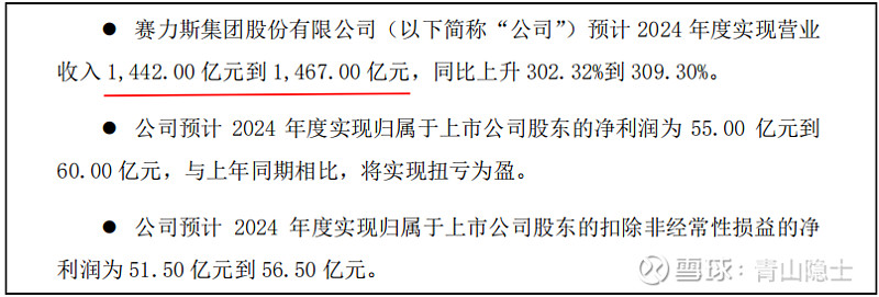 本文将对赛力斯的《2024年年度业绩预盈公告》作出解读。