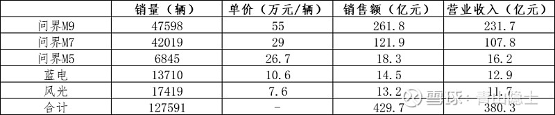 在《赛力斯2024年营收和净利润预测》一文中,我认为,2024年第四季度,赛力斯旗下品牌问界、蓝电、风光的销量总和为12.76万辆,预计销售额约为429.7亿元人民币,对应的营业收入则大约为380.3亿元人民币。