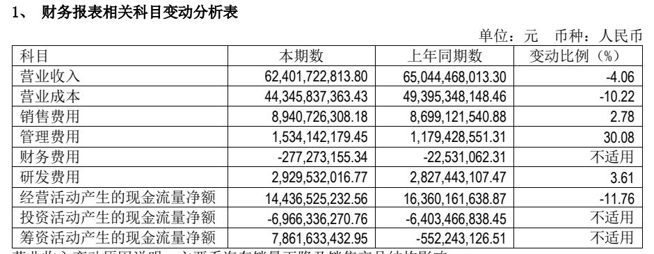 然而细看之下,这份亮眼的成绩单背后却藏着众多隐忧。今年上半年公司实现营收624亿元,同比下降4.06%,一季度净利润增速虽高达240.6%,但二季度却骤降至56.7%,这种增利不增收,净利润增速几近“脚踝斩”的“反常”现象难免会让市场动摇信心。