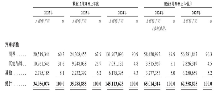 相比之下,赛力斯旗下其他汽车品牌的收入则呈下滑态势,由2022年的107.62亿元降至2024年的70.31亿元,收入占比也由31.6%断崖式下跌至4.8%。截至2025年6月末,该项收入的占比仅剩4.5%。