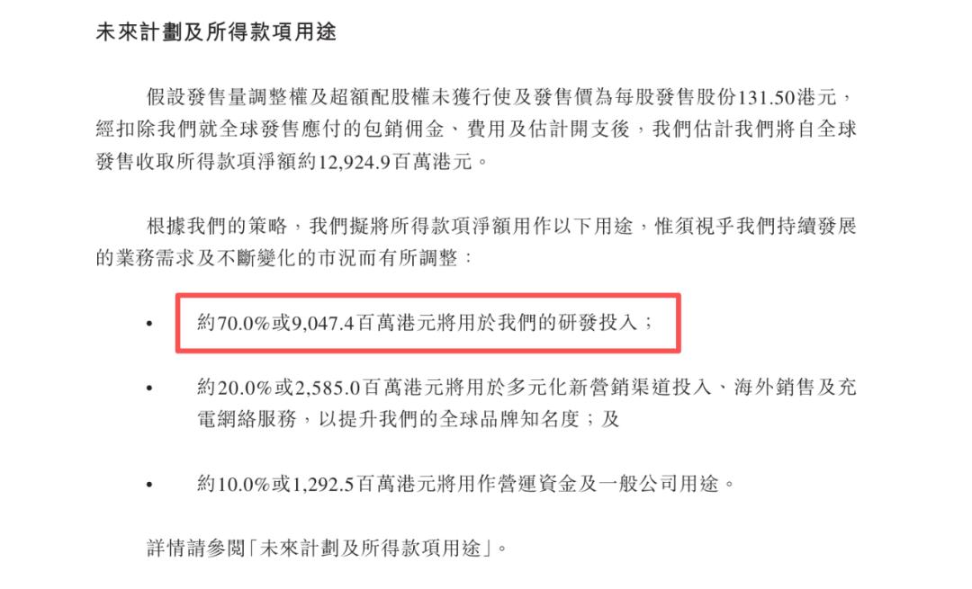 根据招股书披露, 赛力斯 此次IPO募资净额高达140.16亿港元,其中70%将用于研发投入。