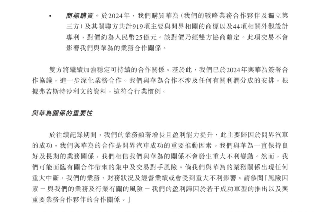 值得注意的是, 赛力斯 在招股书中也提示了高度依赖 华为 的风险。