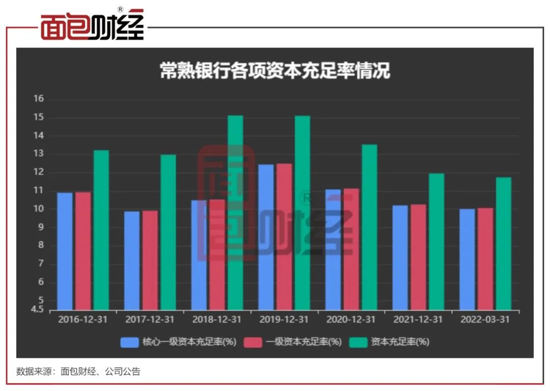 一季报显示,截至2022年3月末,常熟银行的资本充足率、一级资本充足率及核心一级资本充足率分别为11.74%、10.07%和10.01%,较上年末相比均有小幅下降。为来随着可转债发行及转股,该行的资本充足率或将提升。