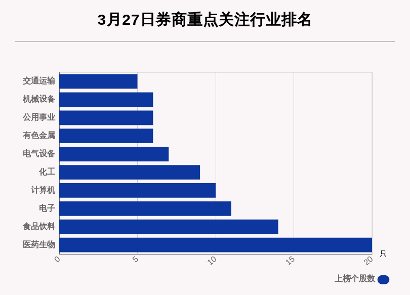 从券商对行业的关注度来看,券商关注个股数居前的行业分别是医药生物、食品饮料、电子。
