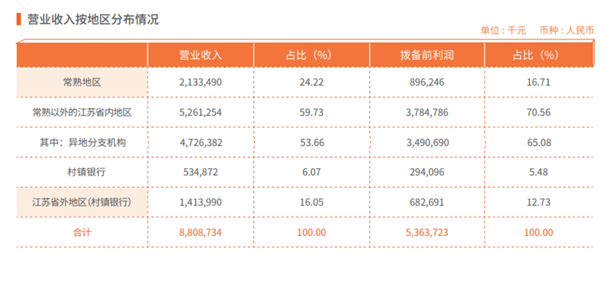 整体来看,该行在常熟以外地区营收规模超过本地的3倍,异地拨备前利润是常熟本地机构的近5倍。