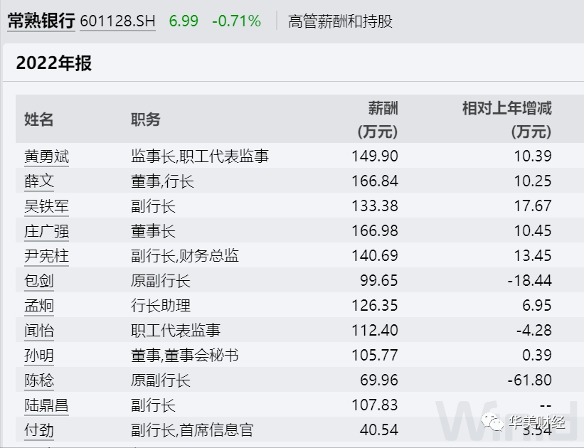 在其担任常熟银行行长完整年份的2021年,其薪酬为118万元,其他高层薪酬当年大多也超过百万元。