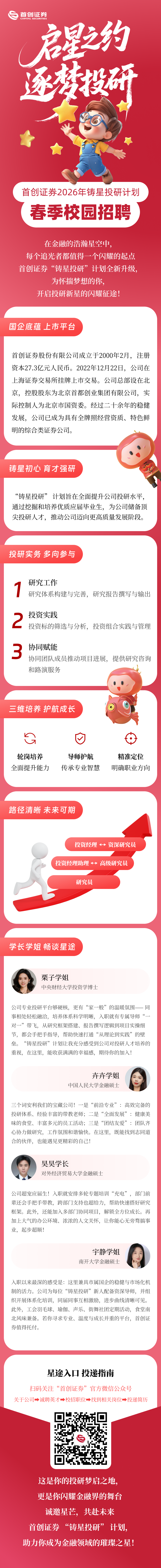 任职条件:硕士研究生及以上学历,金融、经济、数学、统计等相关专业,具备扎实的经济和金融理论知识,具备对宏观经济、股票或债券市场的专业分析能力;对投研工作有浓厚的兴趣和热情,具备强烈的学习意愿和自我提升能力,能够快速适应行业的发展变化和公司的培养要求;困难面前意志坚定;渴望成就,并愿意通过持续努力追求达到更高标准;有证券投资、购买金融产品相关经验者优先;通过CPA、CFA、FRM考试者优先;通过证券从业、基金从业资格考试者优先。