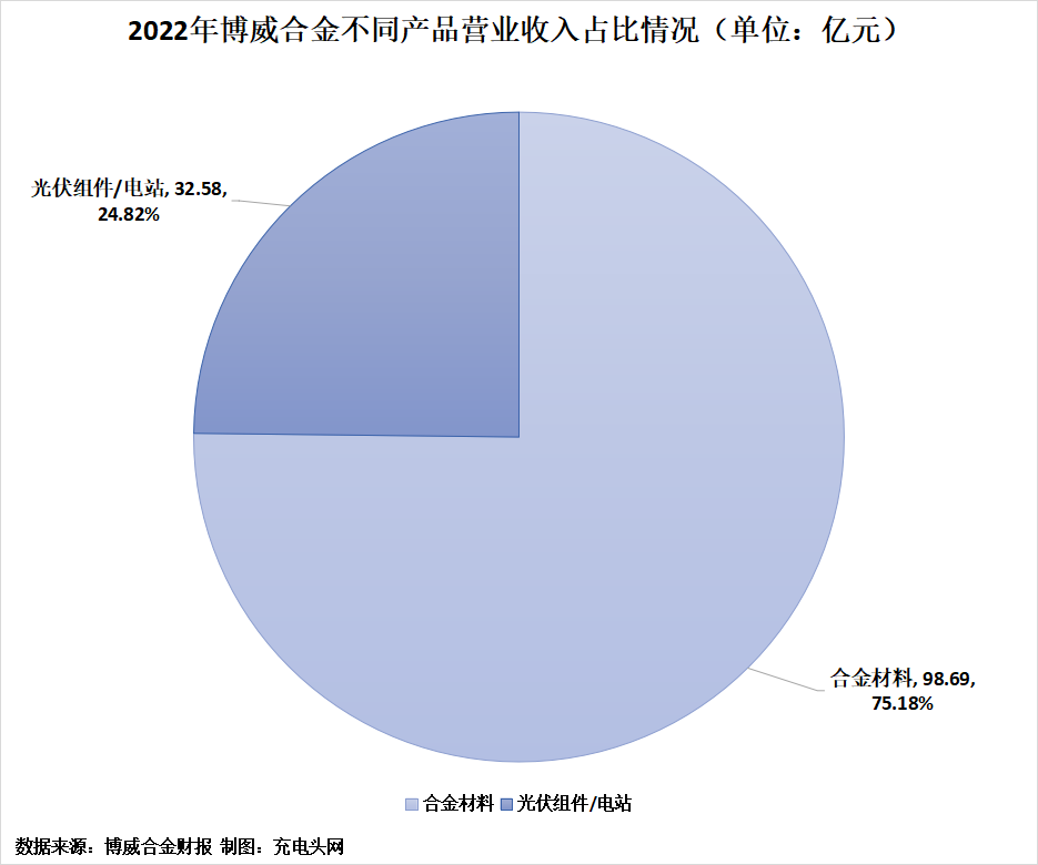 分产品看:2022年,博威合金合金材料营业收入98.69亿元,营收占比75.18%;光伏组件/电站营业收入32.58亿元,营收占比24.82%。