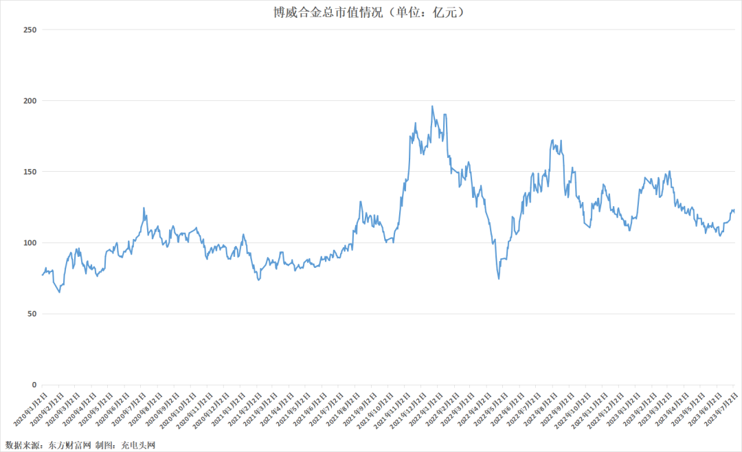 从博威合金近几年市值情况看,2021年12月23日,博威合金市值达到最高196.01亿元;2020年2月3日最低为64.96亿元。截至2023年7月5日,博威合金总市值为120.8亿元。