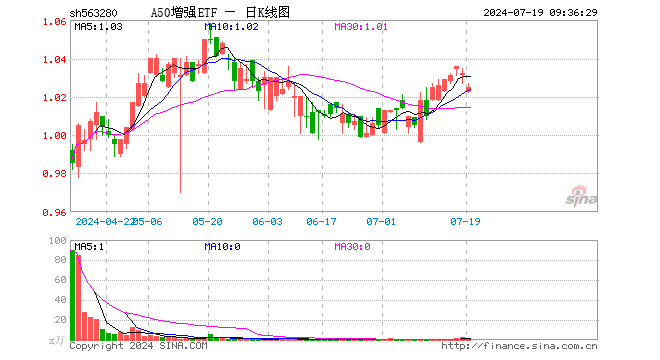 A50增强ETF(563280)业绩比较基准为MSCI中国A50互联互通人民币指数收益率,管理人为富国基金管理有限公司,基金经理为徐幼华,成立(2024-04-01)以来回报为3.74%,近一个月回报为2.05%。