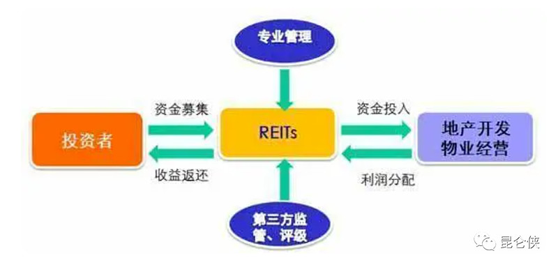 REITs简单一点讲就是,地产公司将其拥有的部分写字楼或者购物中心打包为一个项目,作为一个金融信托产品发行,承诺将该项目获得的物业收入中的一部分拿来给投资者分红,从而换来一大笔认购者的资金,同时项目所有权仍然属于公司自己。