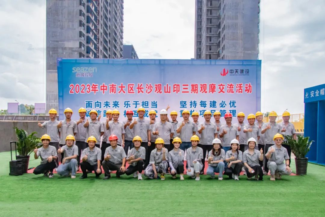 新城控股2023年中南大区观摩交流会在中天六建湖南分公司新城观山印项目举行。本次观摩会由新城控股中南大区主办,中天建设集团有限公司承办。新城控股中南大区工程总方闯、新城观山印项目工程副总监王志祥、中天六建湖南分公司工程管理中心经理何东、新城观山印项目总经理王伟梁等领导出席会议。中南大区运营管理部长沙片区及观山印项目、中南大区在建项目建设单位、供应商(施工单位、监理单位)等代表成员共100 余人参加观摩交流会。