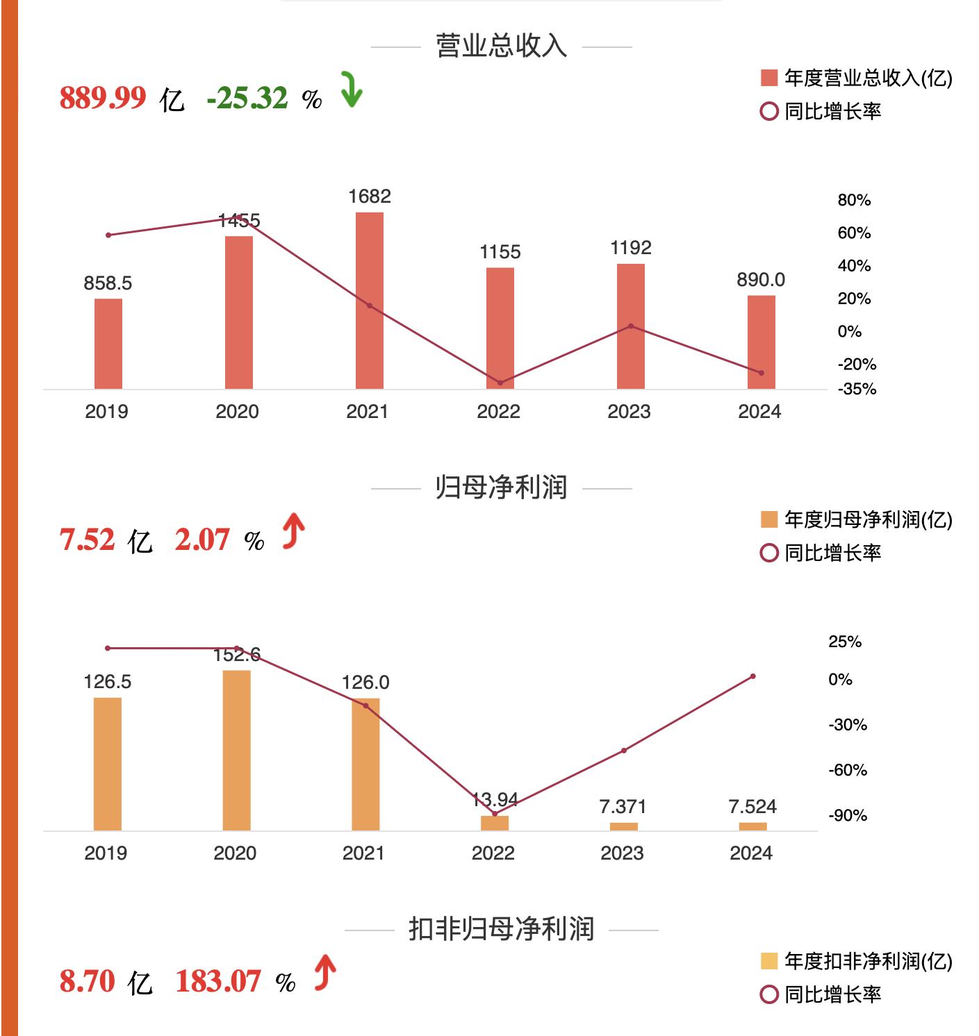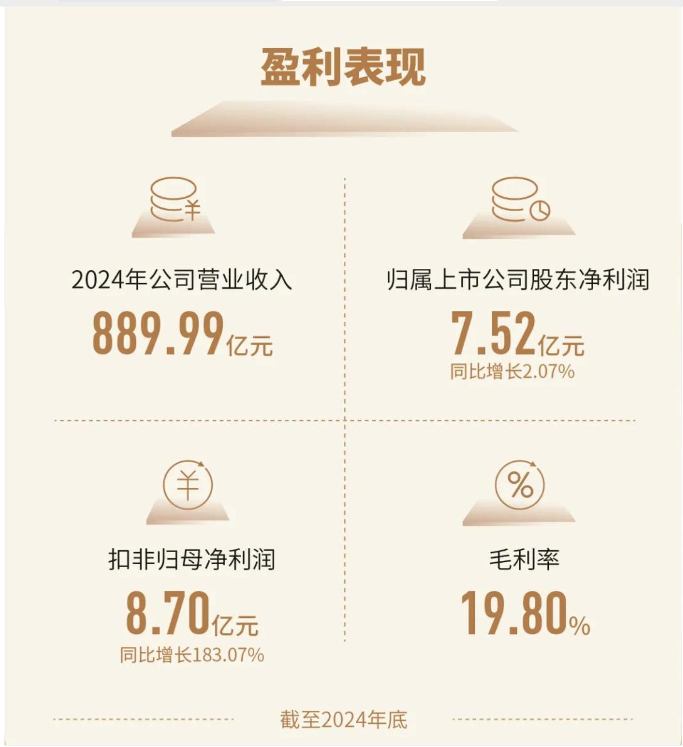 3月28日下午,新城控股(601155.SH)发布的2024年度业绩报告显示,2024年全年新城控股实现营业收入889.99亿元,同比下降25.32%;归母净利润约7.52亿元,同比增长2.07%;尽管营收规模有所下降,但考虑到房地产市场整体环境的变化,新城控股的营收规模仍保持在较高水平。尽管净利增幅不大,但在行业整体下行的背景下,公司实现盈利正增长,显示出较强的盈利能力。