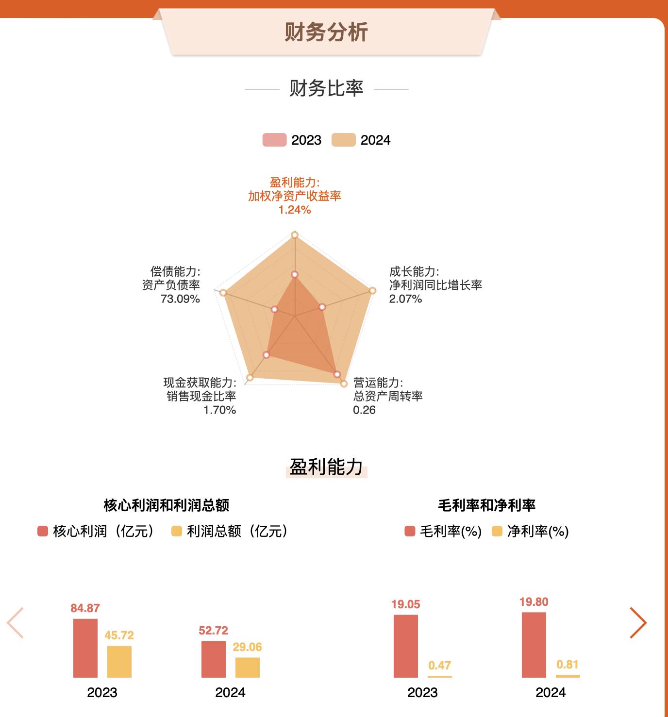 综合分析,新城控股成长能力、盈利能力和控风险能力在2024年展现出较强的韧性。尽管面临房地产市场持续调整的压力,公司仍通过优化业务结构、提升运营效率、加强现金流管理和债务控制等措施,实现了稳健的经营业绩。未来,随着市场环境的逐步改善和公司战略的持续推进,新城控股的成长潜力和盈利能力能否进一步提升,值得关注。