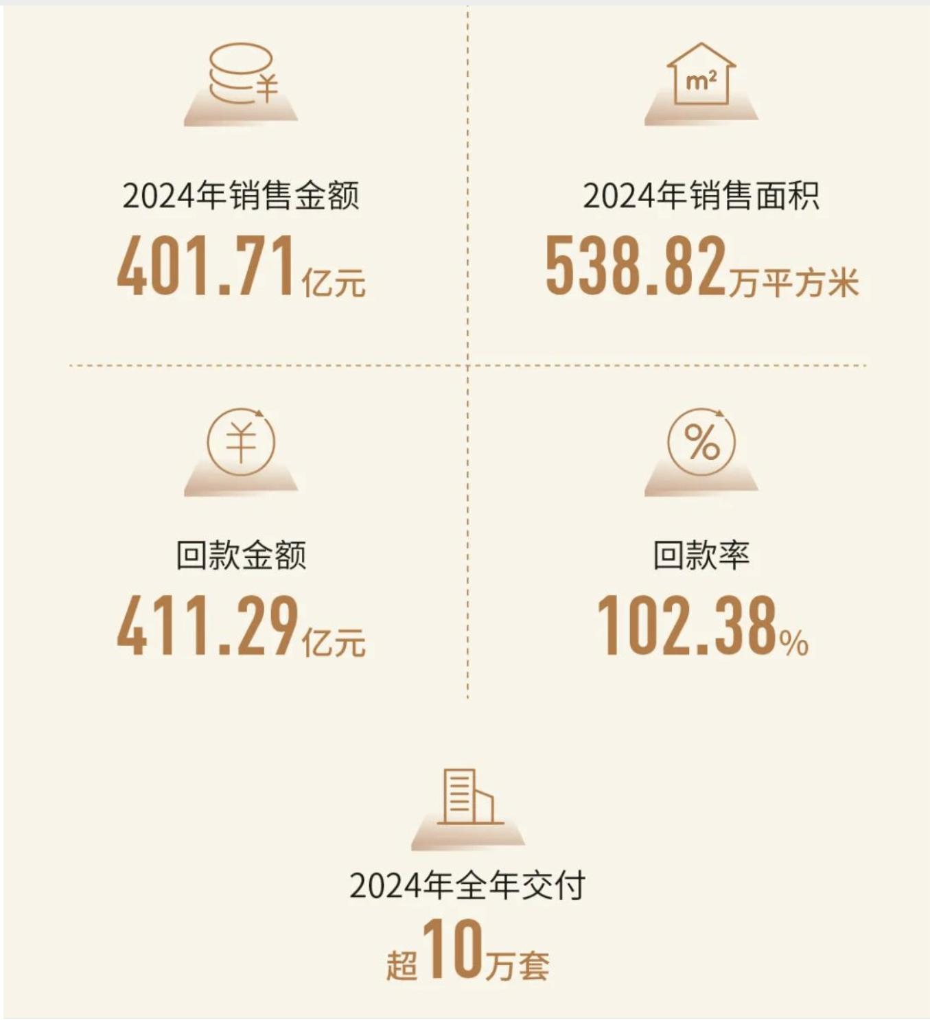 数据显示,2024年,新城控股实现合同销售金额约401.71亿元,合同销售面积约538.82万平方米。管理层宣称,尽管销售规模有所收缩,但回款率达到102%,显示出公司较强的销售回款能力。