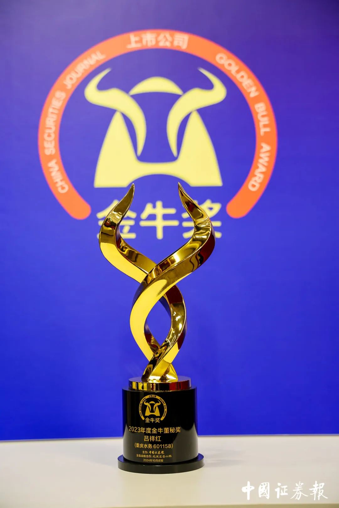 近日,由中国证券报与南通市人民政府联合主办的2024上市公司高质量发展论坛暨第二十六届上市公司金牛奖颁奖典礼在江苏南通举行。期间,“第二十六届上市公司金牛奖”正式揭榜,重庆水务环境集团所属重庆水务股份公司董秘吕祥红荣获“金牛董秘奖”。