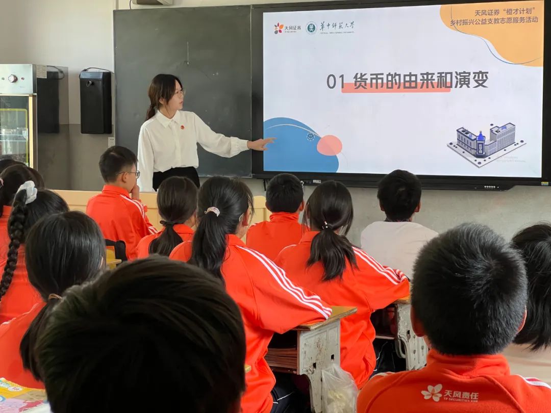 刚刚过去的六一儿童节,在湖北证监局指导下,天风证券联合携手武汉大学、华中农业大学、华中师范大学等高校的支教老师来到房县窑淮镇窑淮学校,为孩子们策划了一场不一样的儿童节礼物。天风证券给乡村学校的孩子们送去了书籍和学习用品,为他们定制爱心校服,还为孩子们带来生动有趣的“少儿财商课”,帮助孩子们从小认识金融,开阔视野。