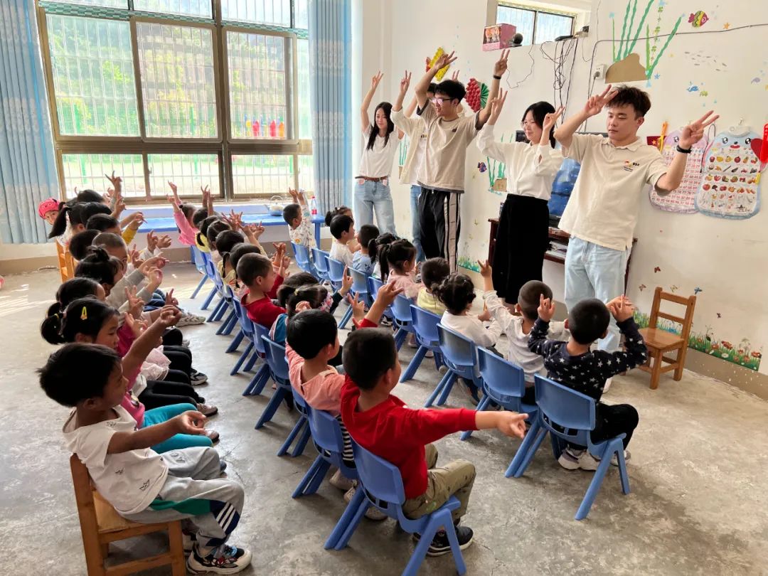 少儿财商课后,天风证券又赶往窑场村幼儿园,看望那里的儿童,与他们共唱一首歌、共读一首诗、共跳一支拍手舞、共玩一场游戏,并为孩子们送去了300余套书籍和学习用品,还定制了爱心校服。