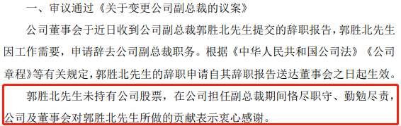 彼时的公告还显示,郭胜北在天风证券担任副总裁期间恪尽职守、勤勉尽责,公司及董事会对其所做的贡献表示衷心感谢。