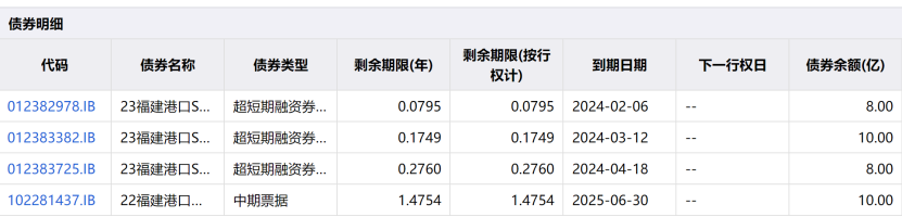并且,在今年4月18日前,仅福建港口集团自身即有28亿元超短期融资券(SCP)到期。最近一笔“23福建港口MTN003”的中期票据募集资金用途中也提到,募集资金10亿元用于补充发行人子公司的流动资金。可见,福建港口集团及子公司融资压力较大。