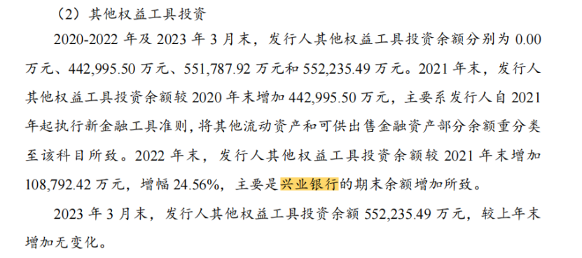 这其中,关于兴业银行的投资,至少在2022年末,就被归属为其他权益工具投资。
