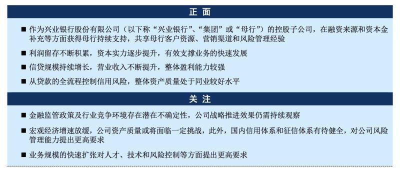 中诚信国际在2023年11月发布了对兴业消费金融的最新评级报告。在报告开头的“关注”部分,中诚信国际标注: