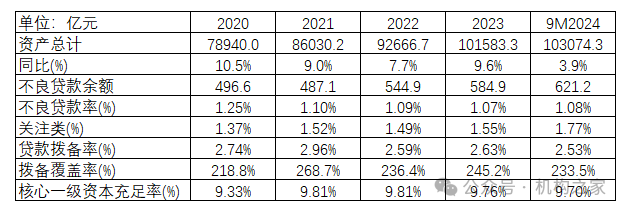 和不少银行捉襟见肘的情况不同,兴业银行资本水平整体保持稳定和充足。截止2024年三季度末,其核心一级资本充足率为9.70%,仅较2021年最高点下降11BP。主要源于该行盈利留存以及资本结构调整。事实上,该行也积极通过发行可转债方式补充资本,但目前来看,效果不佳。主要原因是其股价不够强势,近几年股价也只能说是从底部有所回升,但未创新高,因此也无法实现转债转股,从而和资本市场形成良性的循环。截至2024年9月30日,兴业银行的可转债转股比例为0.00053%。这意味着兴业转债中只有非常小的一部分被转换成了兴业银行的A股普通股,绝大多数的可转债尚未转股。