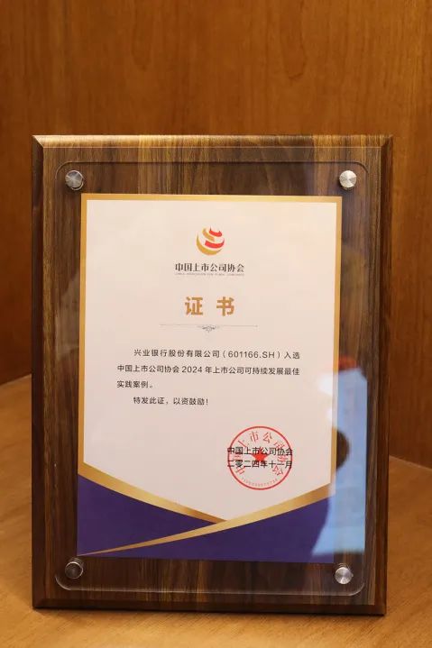 近日,由中国上市公司协会主办的2024中国上市公司可持续发展大会在京召开。兴业银行凭借在可持续发展综合实践方面的突出表现,获选“2024年上市公司可持续发展最佳实践案例”。
