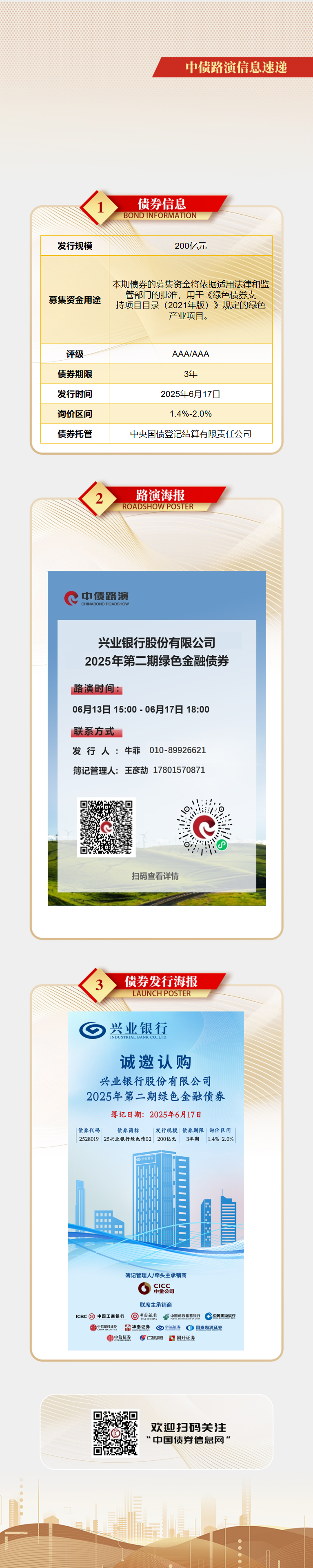 【中债路演信息速递】兴业银行股份有限公司2025年第二期绿色金融债券