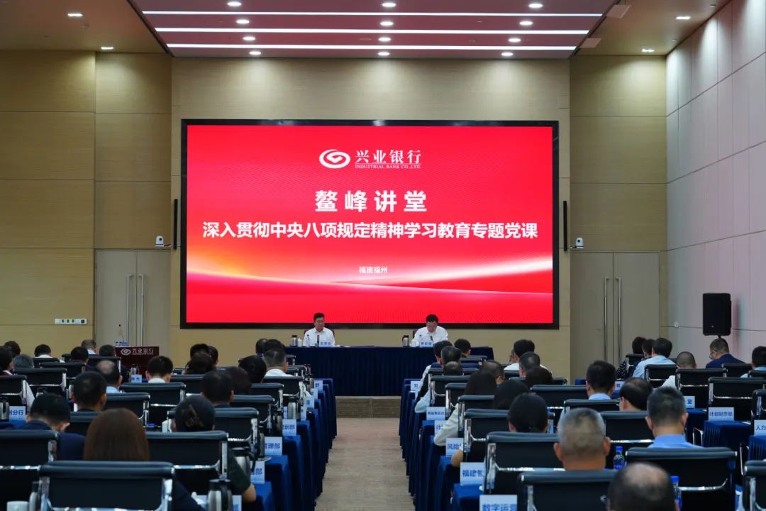 近日,兴业银行开展深入贯彻中央八项规定精神学习教育专题党课,党委书记、董事长吕家进以“贯彻中央八项规定精神,践行金融为民理念,持续增强高质量党建对高质量发展的引领作用”为题讲授专题党课,党委副书记、行长陈信健主持,总行领导班子成员出席。