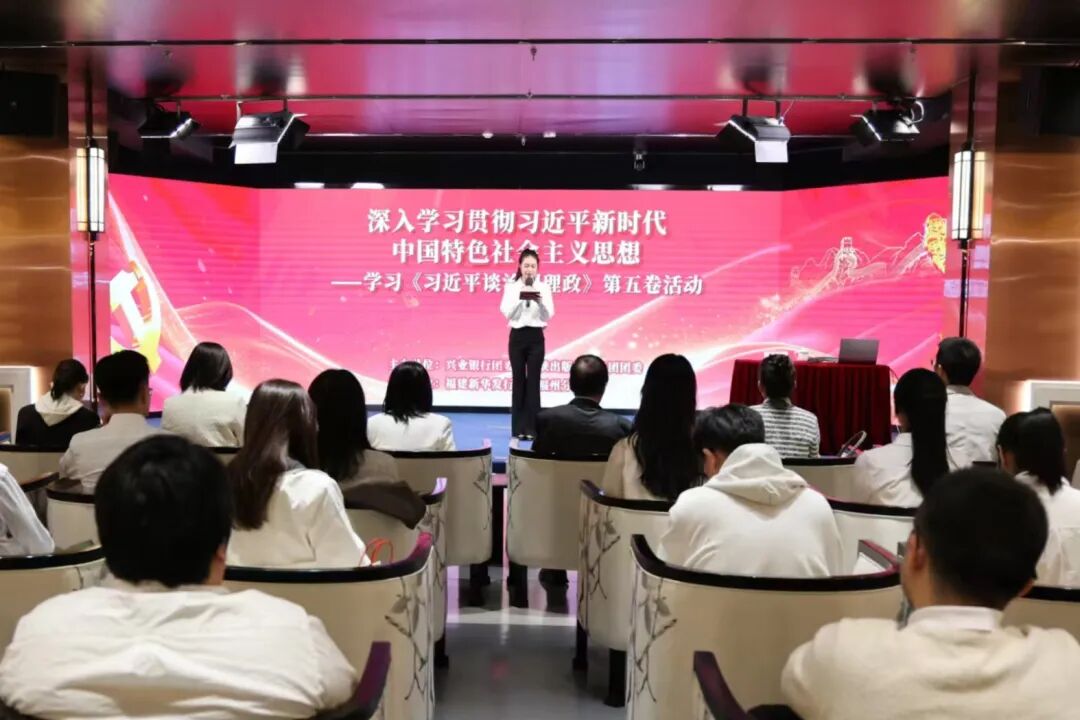 为深入学习贯彻 习 近平 新时代中国特色社会主义思想,抓实青年理论学习,激发青春奋进力量,近日, 兴业银行 团委联合海峡出版发行集团团委,在新华书店安泰图书城共同举办《 习 近平 谈治国理政》第五卷专题联学活动。活动以理论宣讲与实践分享相结合的形式,搭建跨界思想交流平台,推动党的创新理论在青年干部员工中入脑入心、见行见效。