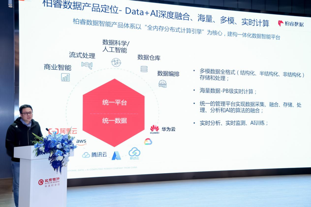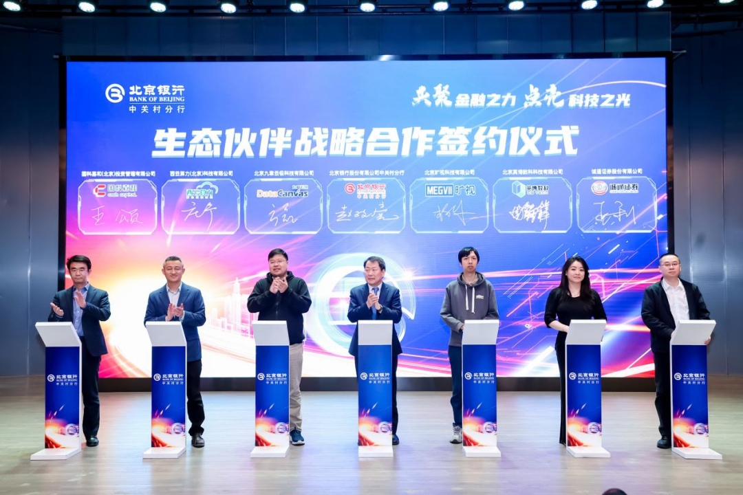 活动上,北京银行中关村分行与北京九章云极科技有限公司、西云算力(北京)科技有限公司、北京旷视科技有限公司、北京英博数科科技有限公司、国科嘉和(北京)投资管理有限公司、诚通证券股份有限公司6家生态伙伴签署战略合作协议。惠每资本、九章云极、柏睿数据现场进行路演,同与会嘉宾分享创新技术,挖掘合作机遇,现场气氛十分热烈。